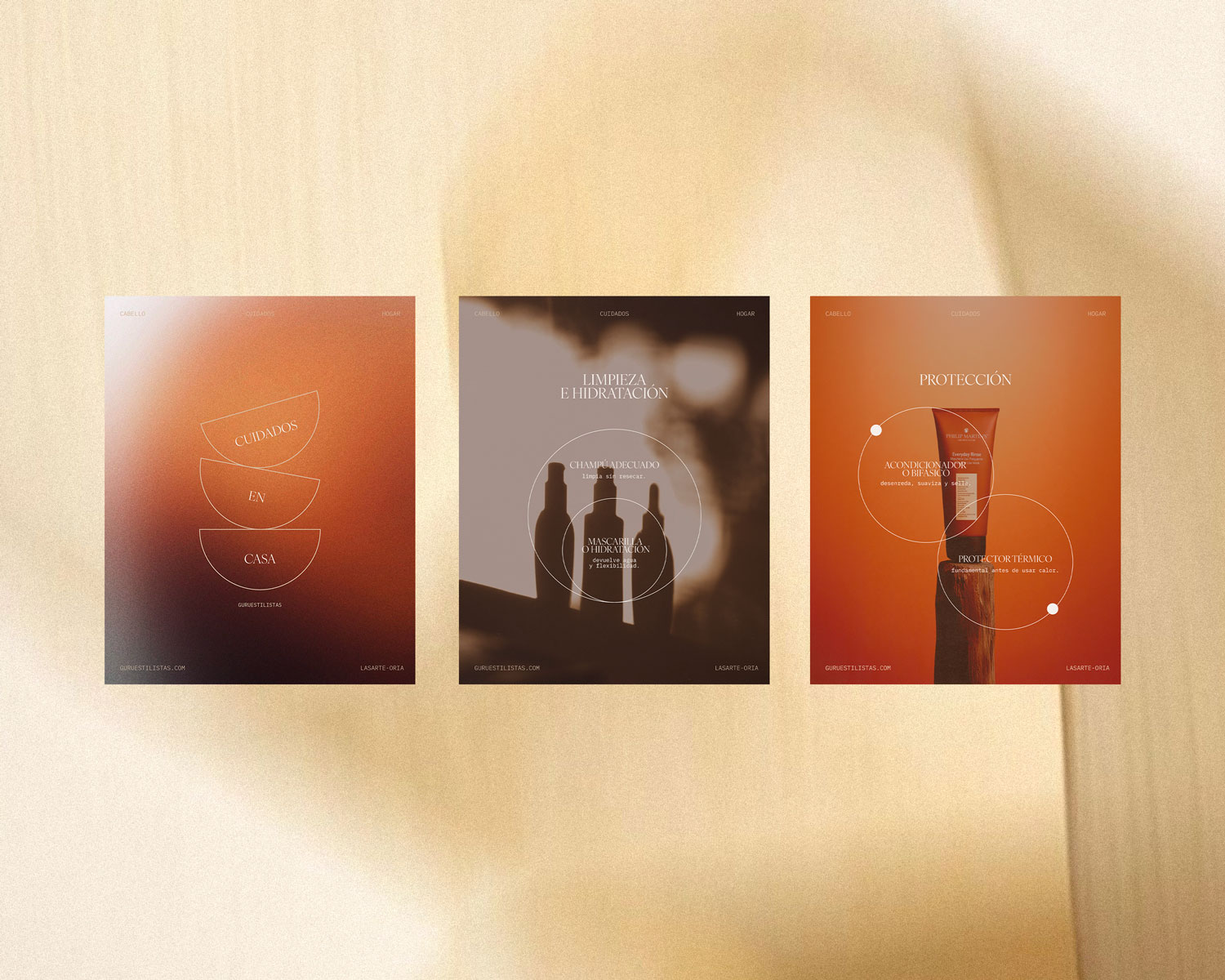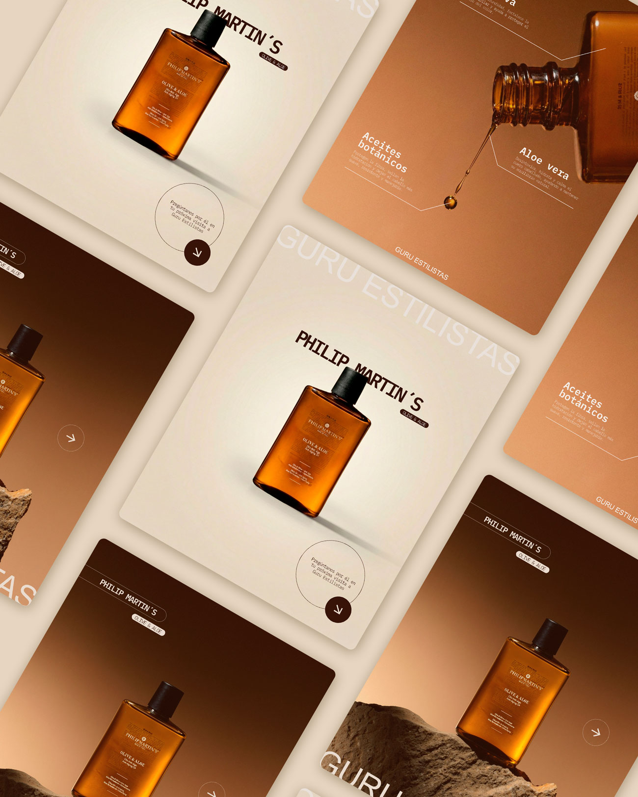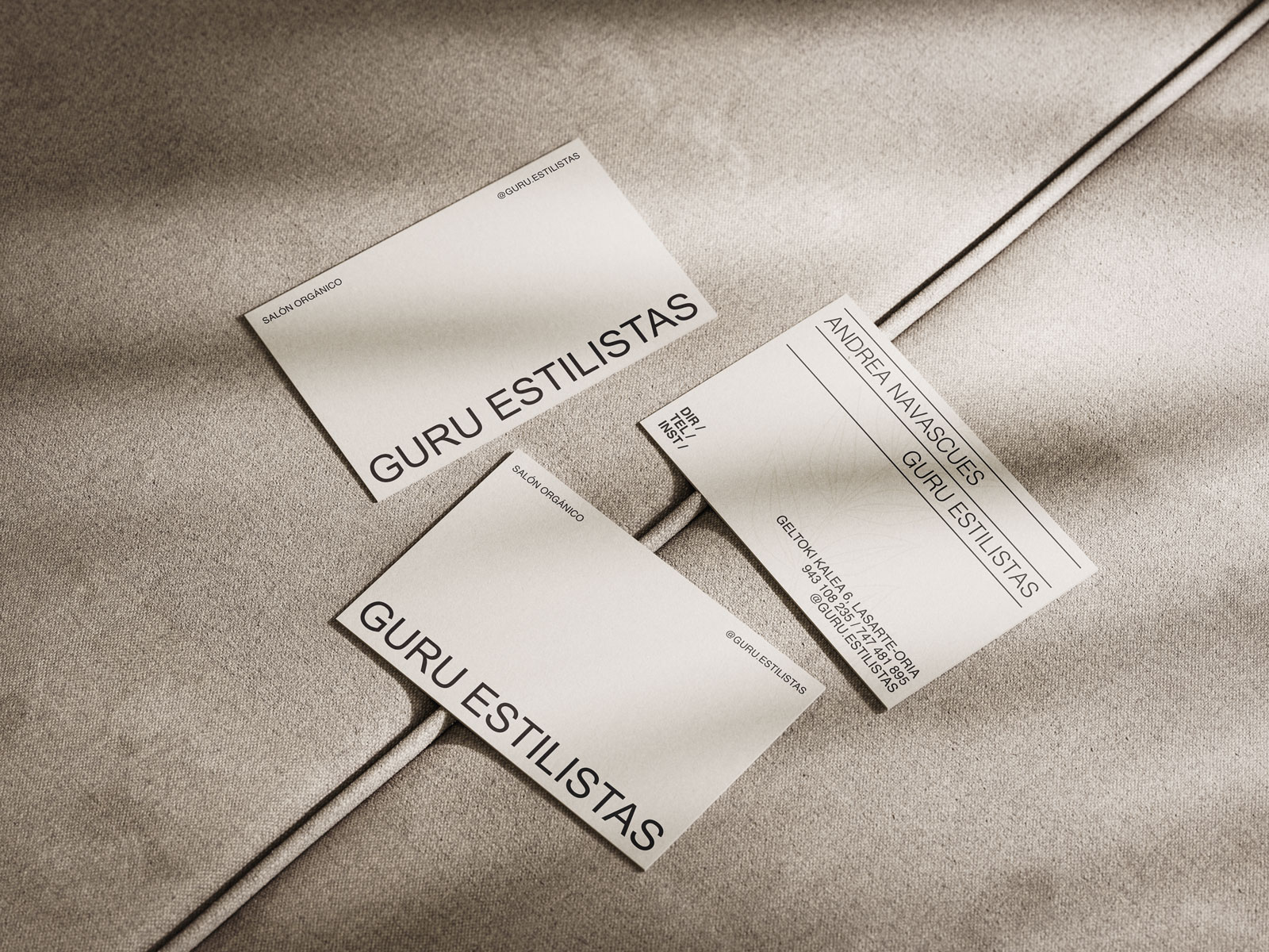 Replanteamiento visual de Guru Estilistas desde la observación de su práctica diaria. La identidad se construye desde lo tangible —gesto, materia, resultado— buscando una forma de comunicar que no dependa de artificios sino de lo que realmente ocurre en el espacio.